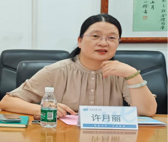 许月丽副院长代表学院对刘瑜老师等一行的到来表示热烈欢迎,并详细介绍了我们历史沿革、学科建设、"外语+专业"人才培养特色(含法国雷恩班、经济学2+2双学位创新班)、硕士点规划及产学研合作等情况。